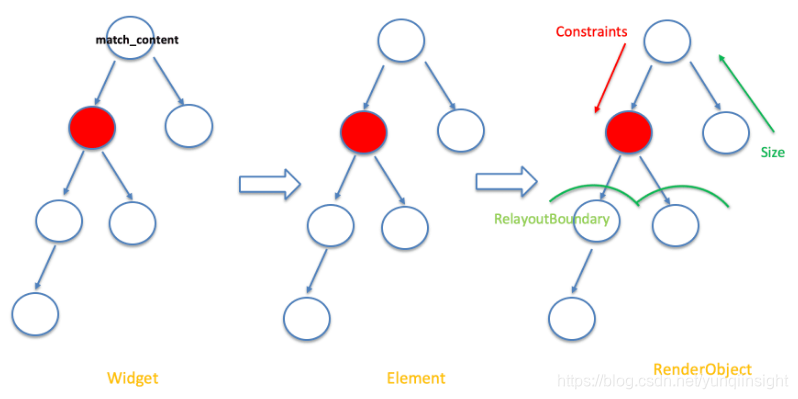 这样每一次Widget更新,顶部节点的大小计算,都要深度遍历整个树。如果Widget其中一个节点更新,又会怎样呢?