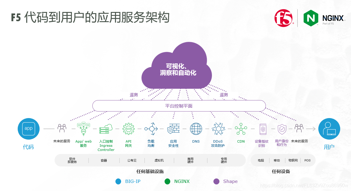 F5中国区首席技术官吴静涛诠释了 “代码到用户” 落地中国的思路。他认为目前火爆的 “新基建” 投资加速了云+端的部署步伐,也给企业带来了诸如云端应用的延迟、多云环境下安全策略不统一、业务活动不可视、运维难度增加等挑战。