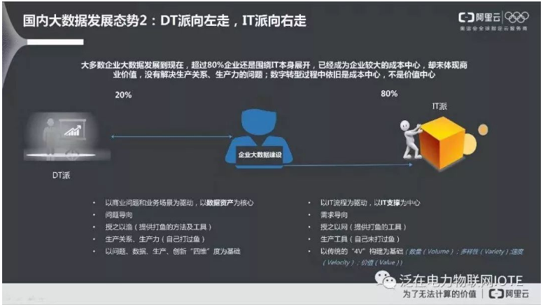 这里的IT和DT的对比就不太合适了,两者不是对立的关系,而是融合的关系,D通过IT形成DT,比如原来IT渠道系统仅受理业务,现在在受理的场景下可以加载基于数据的智能推荐。