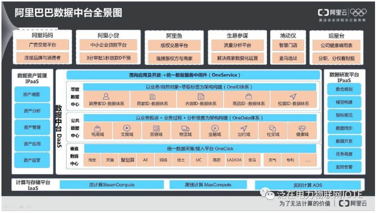 读懂这张图就理解了阿里的数据中台具体到底干了些什么,有五大部分跟数据中台直接相关:数据中台DaaS、数据资产管理IPaaS、数据研发平台IPaaS及计算与存储平台IaaS。