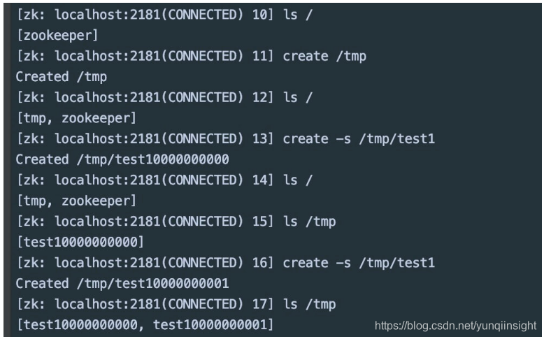 使用 create -s {path} 可以创建有序节点,后面添加十位递增的数字后缀。