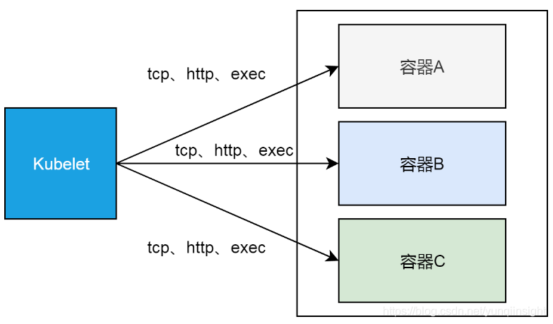 更具体一点,kubelet作为运行在每个节点上的进程,以tcp/http的方式(节点网络命名空间到pod网络命名空间)访问容器定义的接口,或者在容器的namespace里执行exec定义的命令,来确定容器是否就绪。