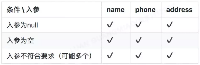 - 每个方法里的每个参数,现在只需要覆盖为 null 的情况就可以了,其他的 case 不可能发生(因为只要不是 null 就一定是合法的)