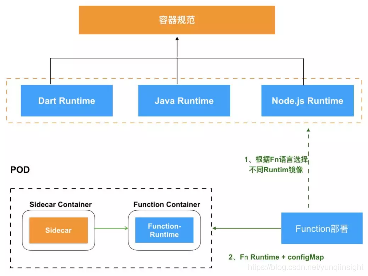 - 基于 Init Container 技术,实现 function 业务与基础设施彻底解耦,通过容器生命周期初始化机制组合 function+ 基础设施构建运行态,为业务 function 与基础设施各自独立运维提供支撑;
