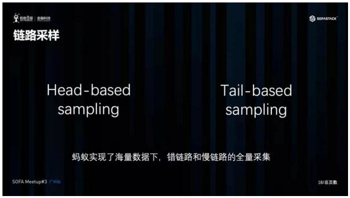 我们在蚂蚁金服内部,使用的是 Tail-based 的采样方案,简单来说,我们会把所有的 Span 数据,都会放到内存里,但这个时候,并不能决定具体那一条链路是采集还是不采集,但是当整条链路闭合后,我们就会对整条的 Trace 根据规则进行判断,如果有调用失败,或者整个调用中有部分 Span 是处于缓慢状态的,系统会将会标记此链路为异常链路,即命中采样,永久保存。这样就能保证运维人员能够无视采样率,具备对异常链路进行查看能力。由于对某一条链路数据是否采集的决定,其实是处于链路的尾部(非严格意义)才作出的,所以叫 Tail-based 采样。