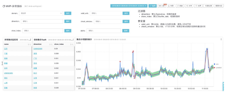 from log group by time, isp order by time) limit 2000003.4 异常集合的监控Dashboard页面