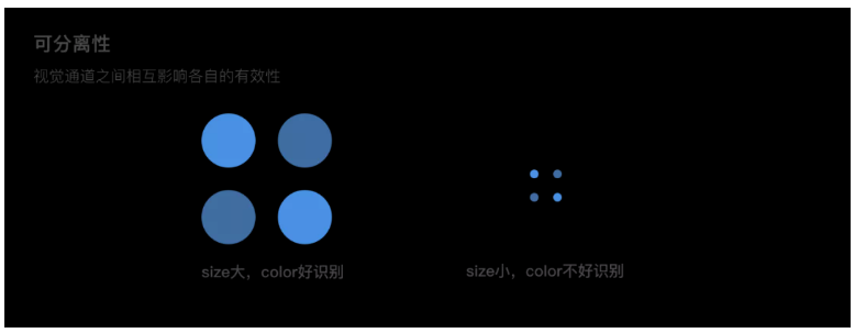 可分离性告诉我们不能无限制的使用多种视觉通道,每增加一种通道来映射数据,都需要考量对已有编码方式的影响,尤其是尺寸(size)特别影响其他视觉通道的效果。