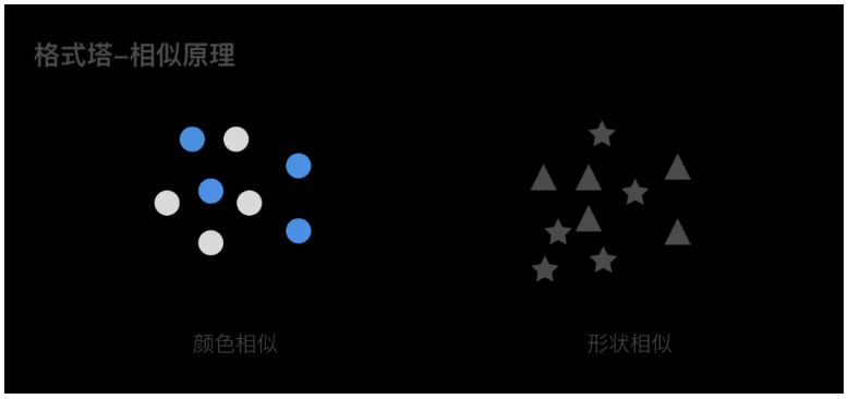 人们倾向将颜色、大小或者形状等属性类似的对象看作一个整体(或者具备关联性)。