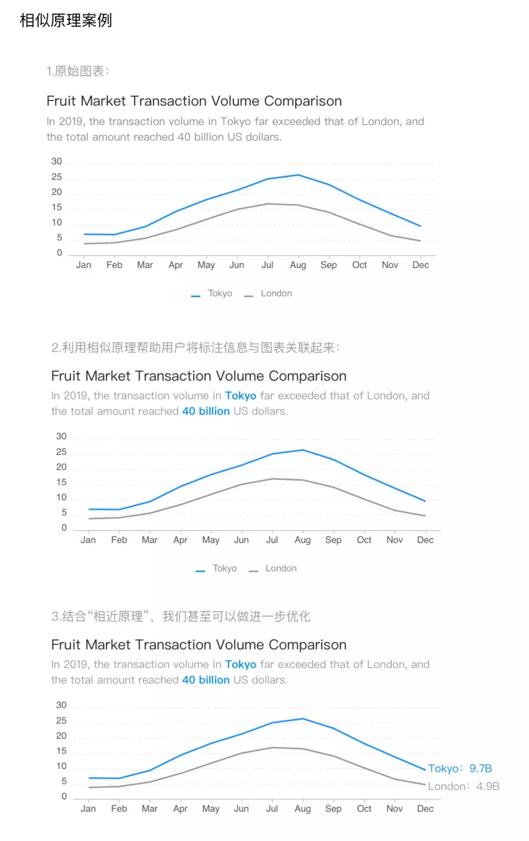 其次,我们可以利用格式塔原理精简或者优化我们的图表元素,减轻认知负荷。
