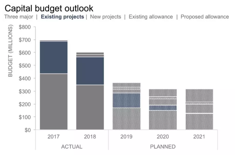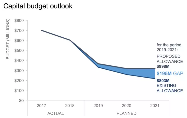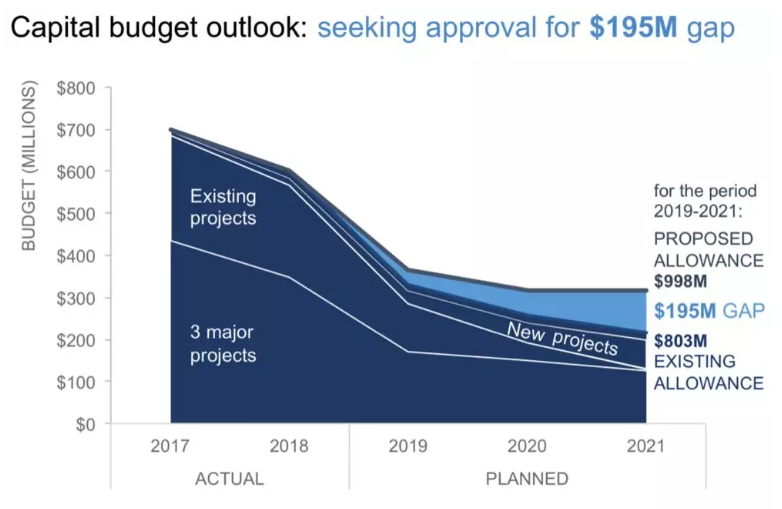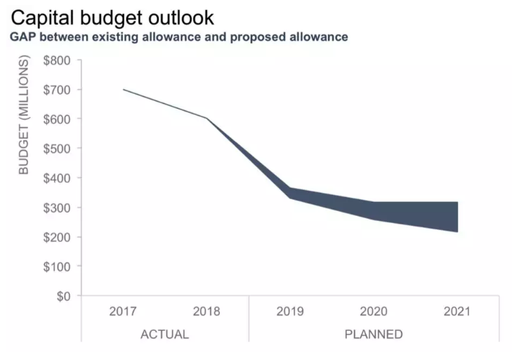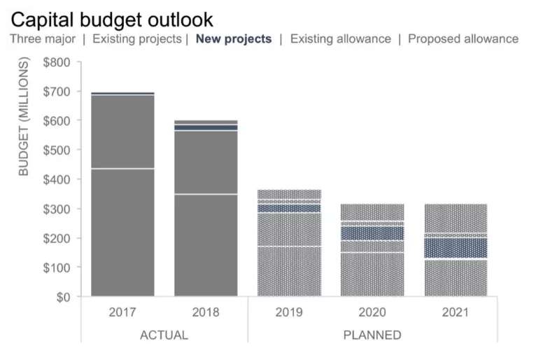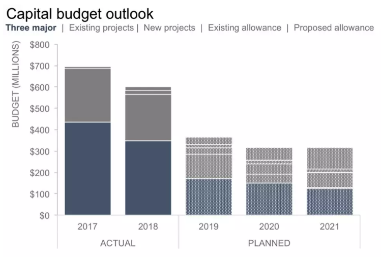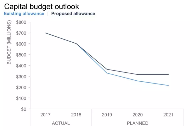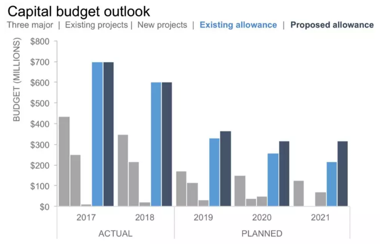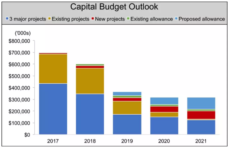 三个主要项目的预算从2018年到2019年显着下降,然后随着时间的推移缓慢下降: