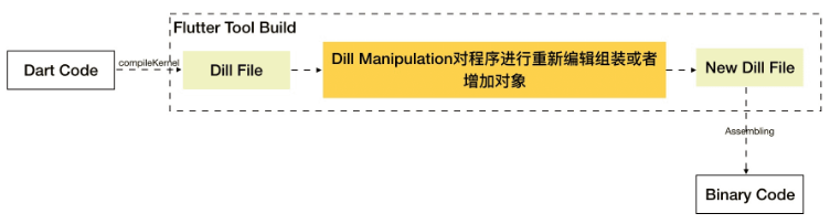 Dart的设计也类似,其中间语言就是Dill。不同的是,这里的Dill不像java的IL或者DotNet的IL那样开放出来可以直接编写,而是通过程序的方式操作实现。