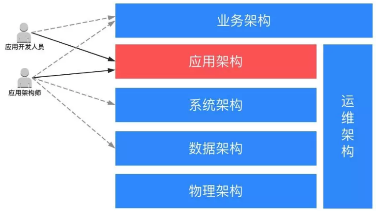 应用架构:由应用架构师负责,他需要根据业务场景的需要,设计应用的层次结构,制定应用规范、定义接口和数据交互协议等。并尽量将应用的复杂度控制在一个可以接受的水平,从而在快速的支撑业务发展的同时,在保证系统的可用性和可维护性的同时,确保应用满足非功能属性要求(性能、安全、稳定性等)。