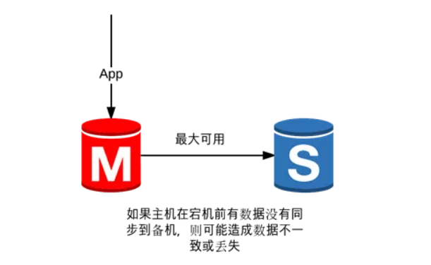 主机尽力将数据同步到备机,而不管是否同步成功,当主机挂掉以后,将备机升级成主机以继续提供服务,这就意味着如果主机在宕机前有数据没有同步到备机,要么通过某种特殊的手段将数据从宕掉的主机同步到备机,要么就接受暂时的数据不一致而继续提供服务,在这种情况下,如果出现主机永久损坏,则会造成数据丢失: