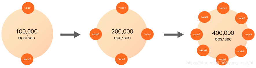 与下一代云应用相关的许多挑战都集中在数据量和数据处理速度上。Cassandra能否有能力应对这种具有多样性的数据流量?答案是肯定的,Cassandra是线性扩展,可以根据前台数据流量轻松确定集群规模,处理能力不够?加一台节点试试。