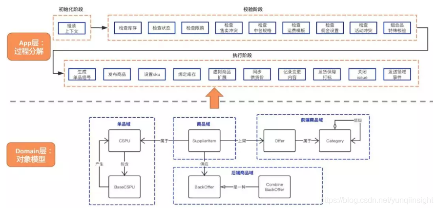 通过上面的案例,我们可以看到有过程分解要好于没有分解,过程分解+对象模型要好于仅仅是过程分解。对于商品上架这个case,如果采用过程分解+对象模型的方式,最终我们会得到一个如下的系统结构: