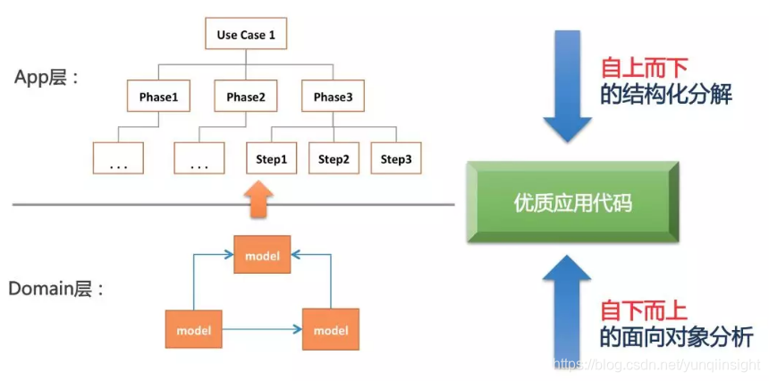 所谓上下结合,是指我们要结合自上而下的过程分解和自下而上的对象建模,螺旋式的构建我们的应用系统。这是一个动态的过程,两个步骤可以交替进行、也可以同时进行。