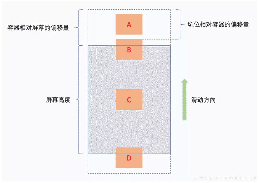 基于此定义,我们可以很快得出如下图所示的场景,在一个可以滚动的页面上有A、B、C、D共4个坑位。其中: