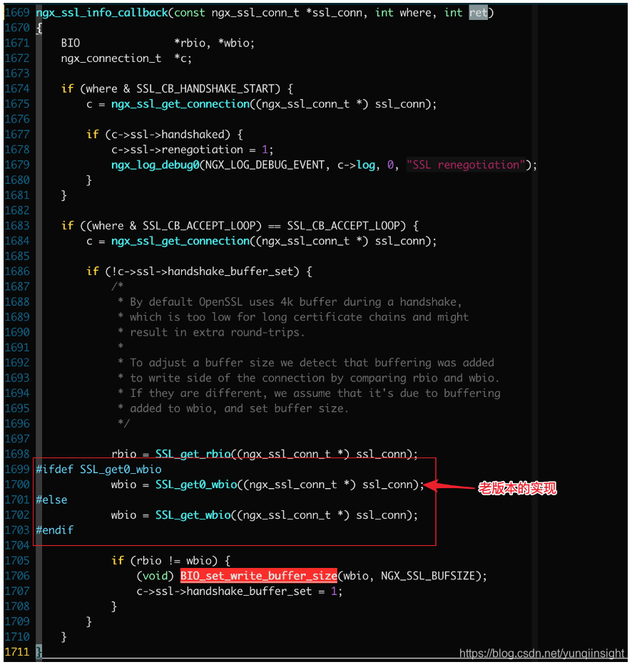 知道了问题的原因所在以及如何避免,那就看应用层的发送数据逻辑了,由于是在 SSL 握手期间,所以应该跟 SSL 写内核有关系,查看 openssl 的源码: