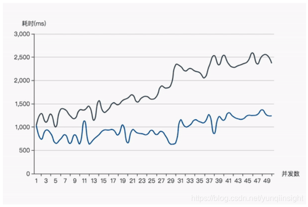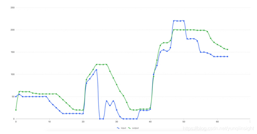 性能简析:Pooling 快弹慢缩时序算法,池容量和实际单位时间申请量关系可做到如图所示(蓝色为实际申请量,绿色为池容量)