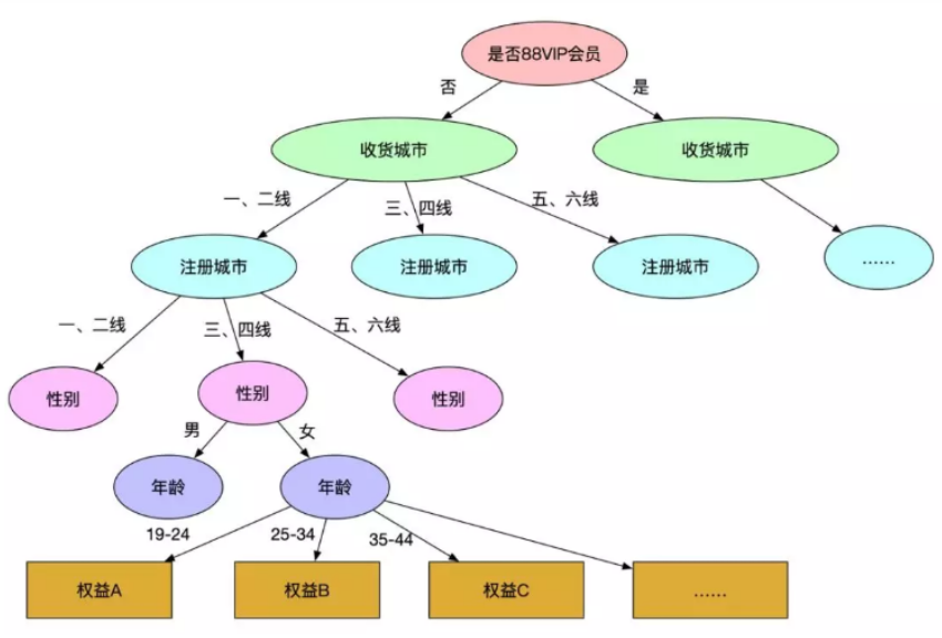 在上线初期,权益底池中的各类优惠券还没有曝光、点击信息时,可以根据用户的基础画像信息,以及用户在站内已有的浏览、加购、购买等行为的信息,作为设计决策树时的一部分先验信息。