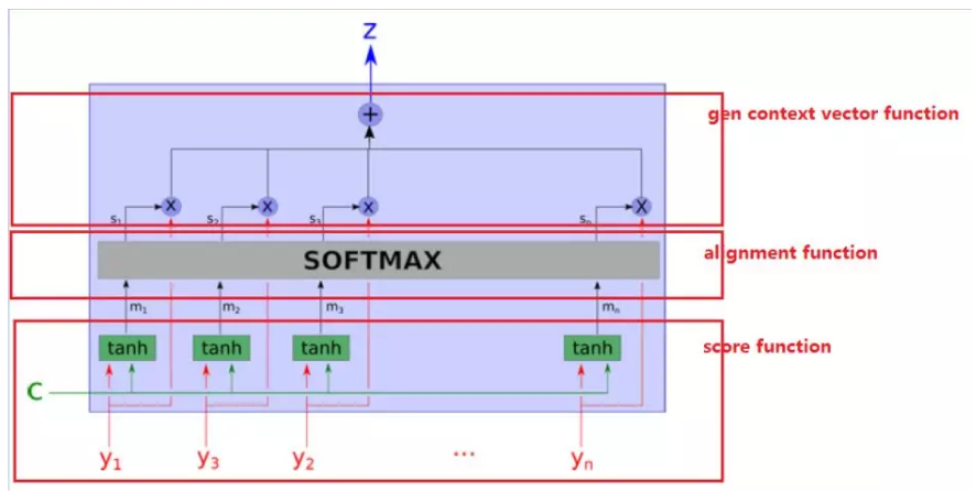 后文都会以统一的三部曲建模方式(score function,alignment function,generate context vector function)来分析所有 attention。