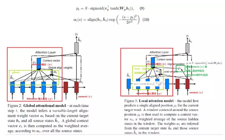 在 soft attention 中,又划分了 global/local attention(In this paper :《Effective Approaches to Attention-based Neural Machine Translation》)。