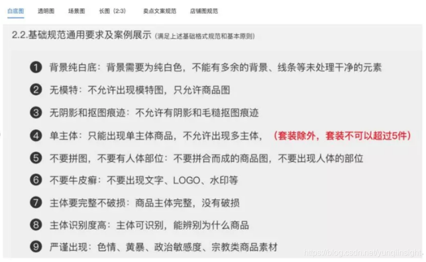电商类业务在素材质量标准上,有以下三个特点(以某会场商品白底图部分基础规范为例):