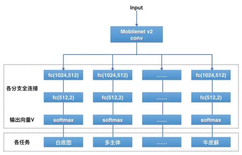- 多任务共享特征提高识别效率:多任务迁移学习网络模型,各个任务共享基础特征,减少基础特征重复计算,提高预测效率;多任务网络模型,各个任务共享基础特征,可以减少深度网络模型对各个任务的训练数据量需求,比如对于牛皮癣、logo、水印等高度相似任务,特征具有高度相似性,可以显著提高各任务识别精度。但当任务间相似程度不是很⼤情况,会增加模型的拟合难度,为此我们采⽤ CurriculumLearning 训练策略、从简到难逐步进行网络学习,同时模型上也结合半监督正则项,充分利用了海量无标签数据,进一步提高精度。