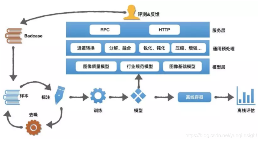 将模型训练研发过程样本获取,特征处理,构建训练模型网络,参数调优等工作通过共享模型训练和统一平台方式消减。快速、复用、灵活泛化的多模型产生。例:牛皮癣检测模型1,牛皮癣检测模型2,牛皮癣检测模型n…,并通过持续样本调整,构建运营业务标准和建模桥梁。