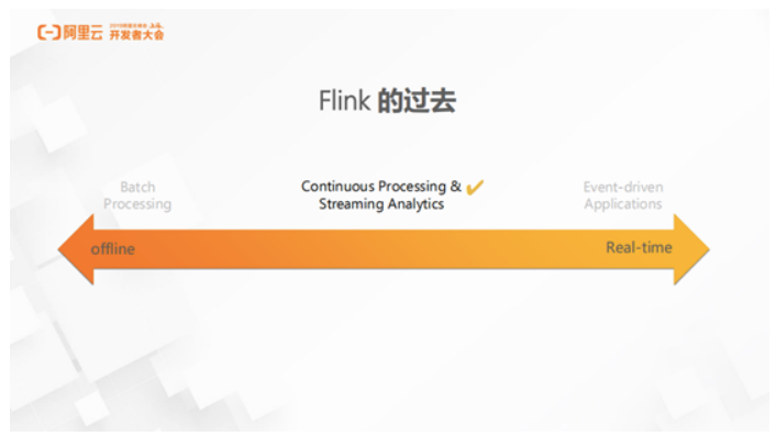 在过去,Flink 基本上围绕着 Continuous Processing 和 Streaming Analytics 领域展开,包括 DataStream API 和后来提出的 Streaming SQL。Flink 不仅在 Continuous Processing 和 Streaming Analytics 领域站稳了脚跟,并且成为了当前领域的领先者。
