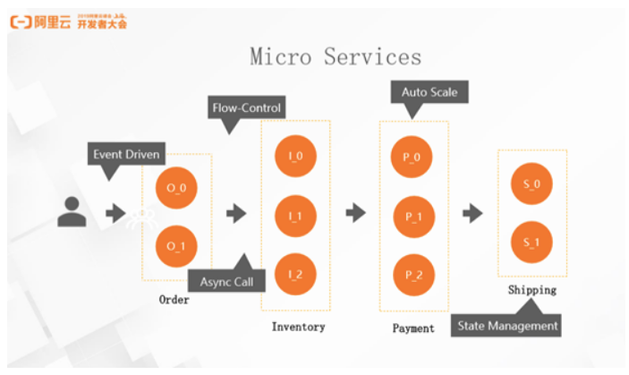 总结起来,Micro Service 需要几点核心要素。第一,事件驱动,第二是系统间的异步传输,同时需要具备较好的流控机制,在节点之间和节点内做动态的扩缩容,最后需要有自己的 DB,可以理解为 Micro Service 需要有对 State 的支持,能够存储历史状态。