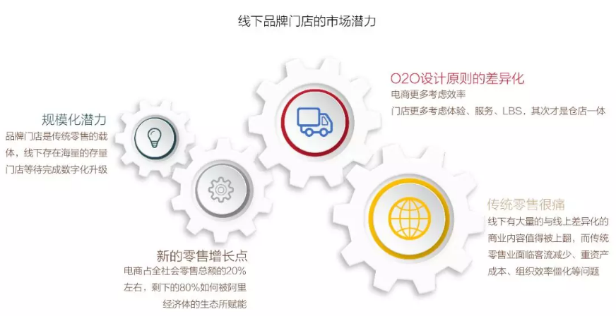 首先我们来看线下品牌的市场潜力,从规模化的角度来说,新零售本身是对老零售的一个升级,当前大量线下存量的是传统品牌的门店,而这些门店都等待着被完成数字化升级,所以如何对线下存量的零售市场去做一个具备规模化能力的升级是一个非常重要的命题。