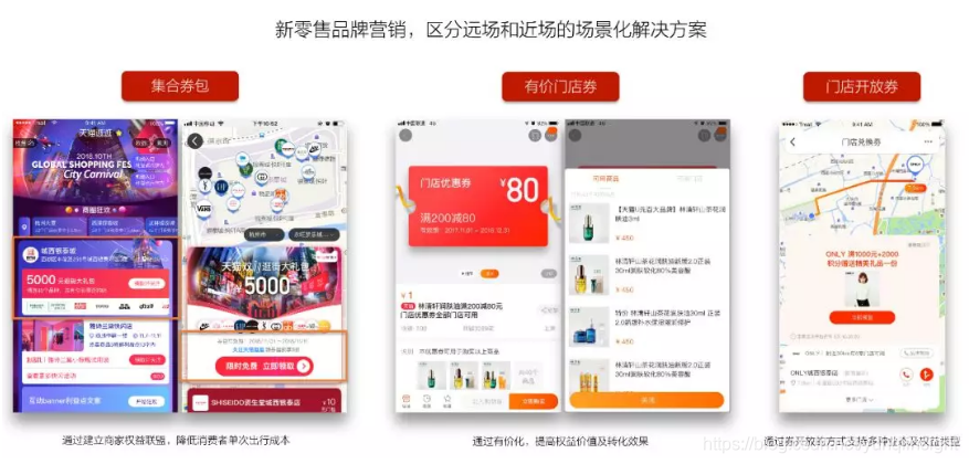 天猫的门店优惠券也是一个新的形态,它跟过去我们电商优惠券最大的区别在哪里?它有非常强的线下的属性,可以选择券可适用的门店,也可以选择所适用的门店商品,甚至是商圈,这些是它的LBS属性比较强的地方。