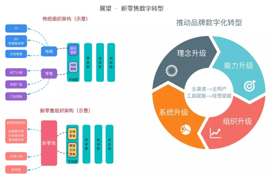 对于市场部转型为全域营销以及基于大数据所做的精准营销。也不再区分到底电商还是线下零售,不管东西在哪里买的,哪里售出的。电商上买也可以去门店退货,门店里面买的也可以退给电商,它是一体的。