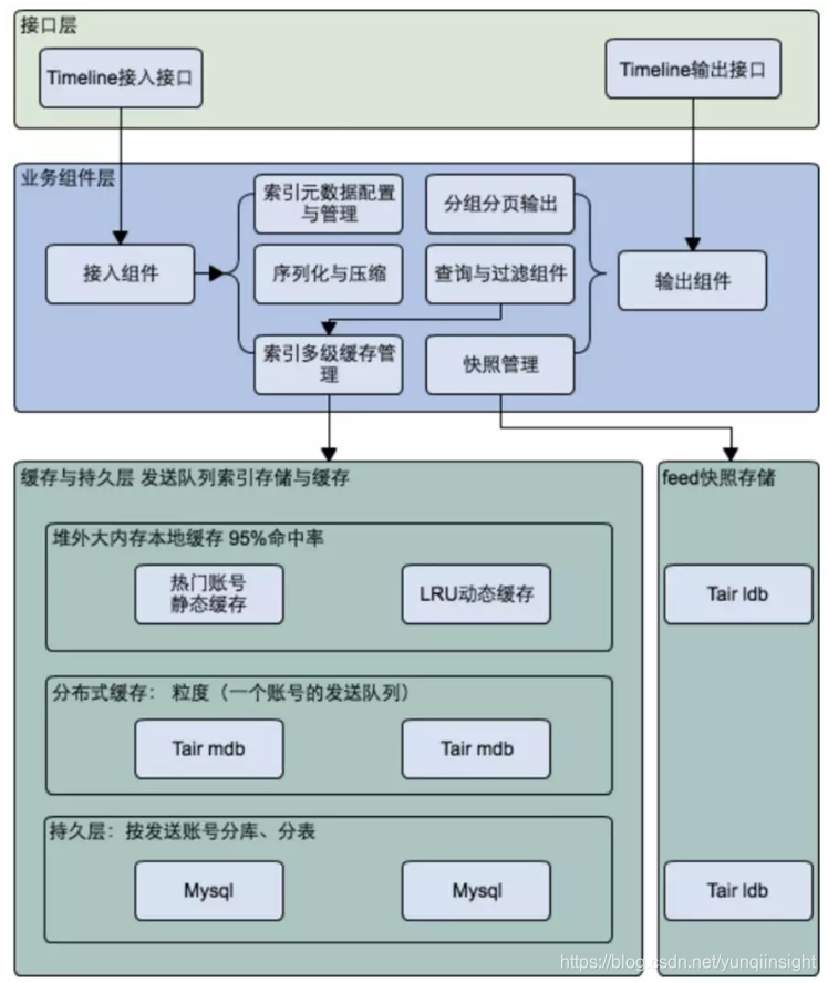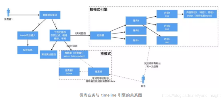 微淘是基于关系的,几年前 feeds 引擎业内是很火的,基本上 Facebook 、 Twitter 、微博等大公司都在探索,我们也伴随着业务沉淀了一套,微淘业务与 timeline 引擎的关系如下: