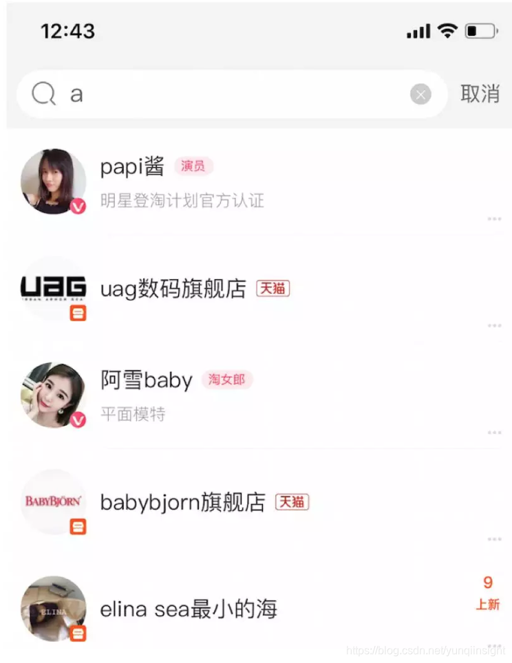 举例:比如我的淘宝--店铺关注列表里面对店铺名称的实时搜索。