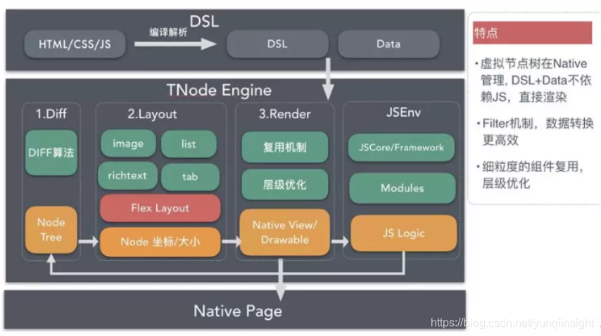 1、首屏性能优化,Duktape 引擎替换 WebView ,低内存高性能。提供端测表达式引擎,常规逻辑处理采用 Native 函数。