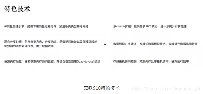 玄铁910采用12级超标量流水线,兼容RISC-V架构且针对算术运算、内存访问以及多核同步等方面进行了增强,同时标配内存管理单元,可运行Linux等操作系统。采用3发射、8执行的深度乱序执行架构,配有单/双精度浮点引擎,可进一步选配面向AI加速的向量计算引擎,适用于5G、人工智能等对性能要求很高的应用领域。