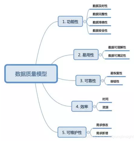 9126的一级特性可以分为以下几个:功能性、易用性、可靠性、效率、维护性、可移植性。那这几个大项对应到数据质量里,会是什么样的呢?