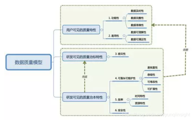 我觉得系统化阐述的一个思路就是寻找当下有没有适合数据质量的质量模型。以传统的质量模型为例,ISO 9126是一种典型的软件质量模型,无论是开发还是测试,无论是各端质量还是服务质量,质量上的大方向不会跳出9126的模型。作为互联网行业,虽然现阶段9126中的二级特性不可能完全落地,但作为一个指导性的质量模型,它会确保质量不会有方向性的大纰漏。那数据质量有没有类似9126的模型可以参考呢?