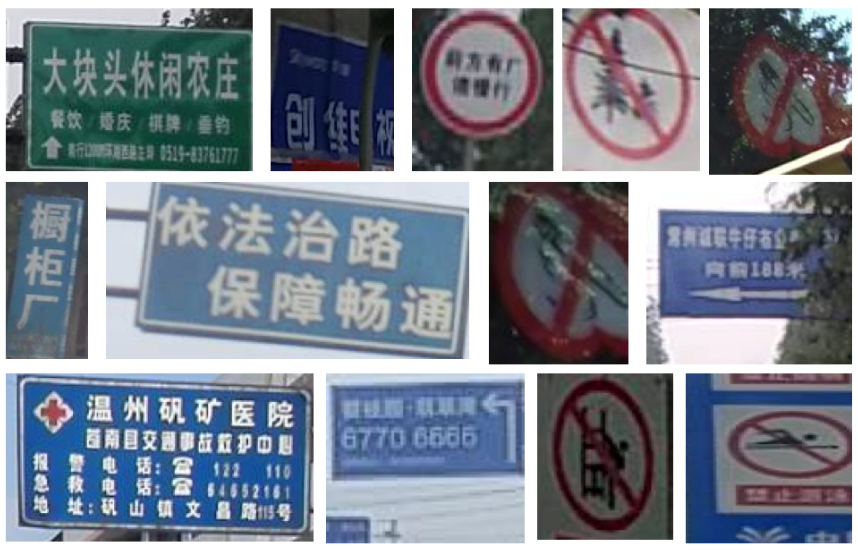 一些外形与交通标志相似的标牌,如商户的招牌、交通公益广告牌等,对算法的准确率造成极大的挑战。