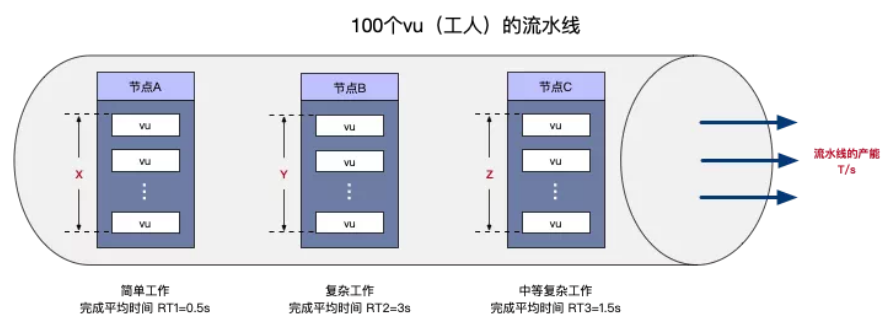 - 节点A工人包装箱子平均耗时 RT1=0.5s(秒),节点B工人包装箱子平均耗时 RT2=3s(秒),节点C工人包装箱子平均耗时 RT3=1.5s(秒);