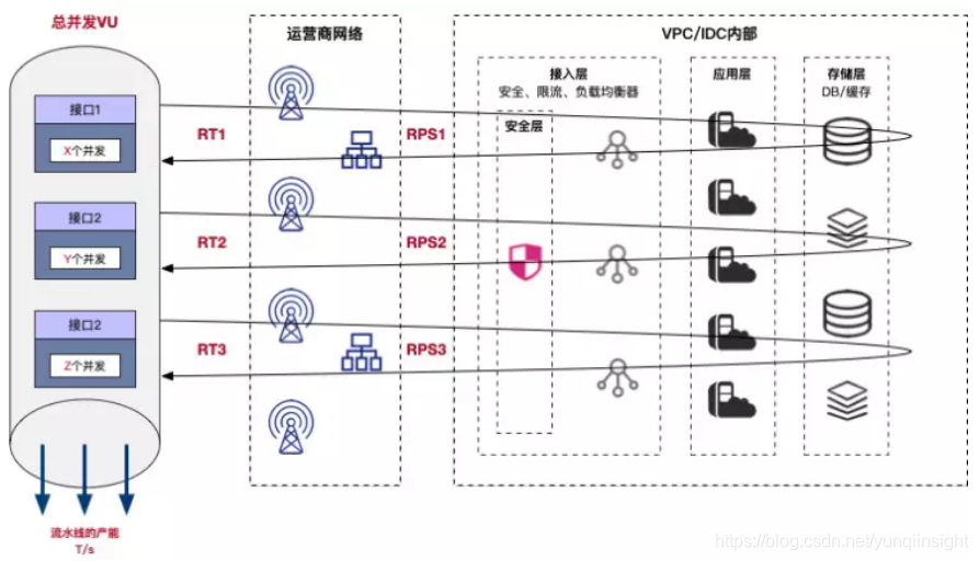 根据“Little定律”,在平衡状态下,我们可以等价认为并发、RPS 和 RT 之间的关系可以概括为:并发数 = RPS * 响应时间