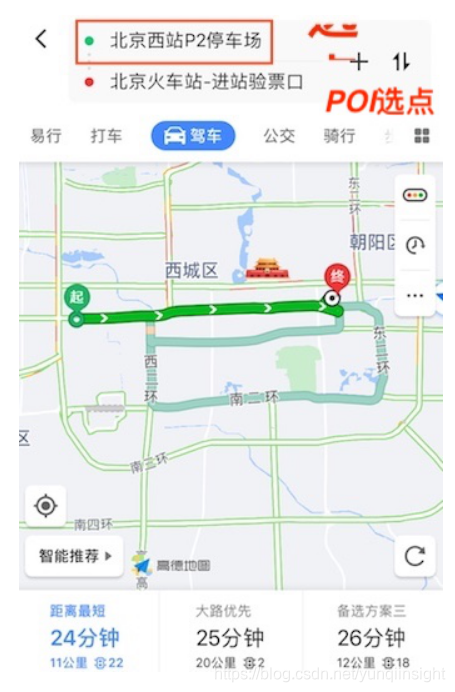 从高德地图App可以看到,用户进行路线规划时选择起点的方式有以下三种: