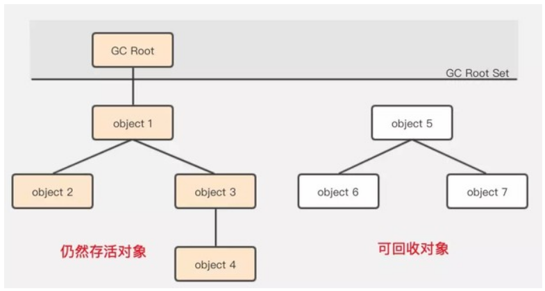 通过可达性算法,成功解决了引用计数所无法解决的问题-“循环依赖”,只要你无法与 GC Root 建立直接或间接的连接,系统就会判定你为可回收对象。那这样就引申出了另一个问题,哪些属于 GC Root。