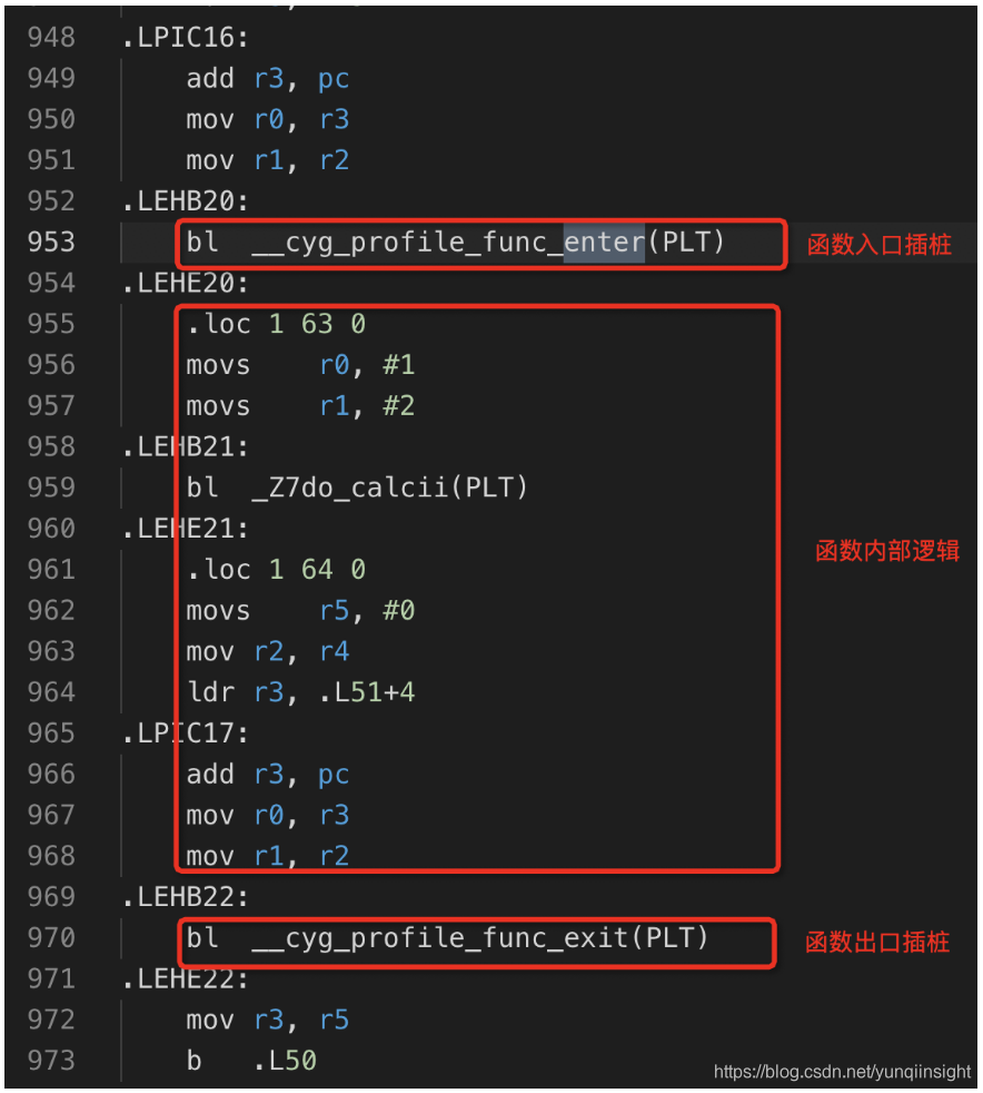 这里需要格外注意,某些不需要插桩的函数可以使用__attribute__((no_instrument_function))来向编译器声明。