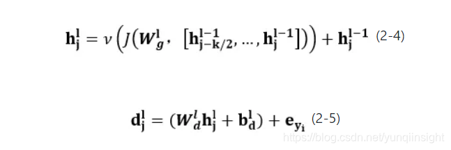 中包含了丰富的信息,而最原始的中心词i本身的信息也相对被弱化了,因而我们借鉴残差网络的思想,按照公式2-3所示,将中心词i原始的表示向量