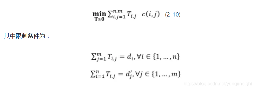 表示p中的第i词中有“多少”转移到r中的第j个词,每个词的转移总和及接收总和不能超过其在文本中的占比,即,