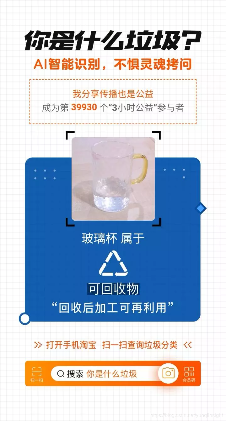 或者,打开手机淘宝搜索“你是什么垃圾”,系统可以通过阿里云异构计算能力进行快速智能识别,直接进入垃圾识别功能。
