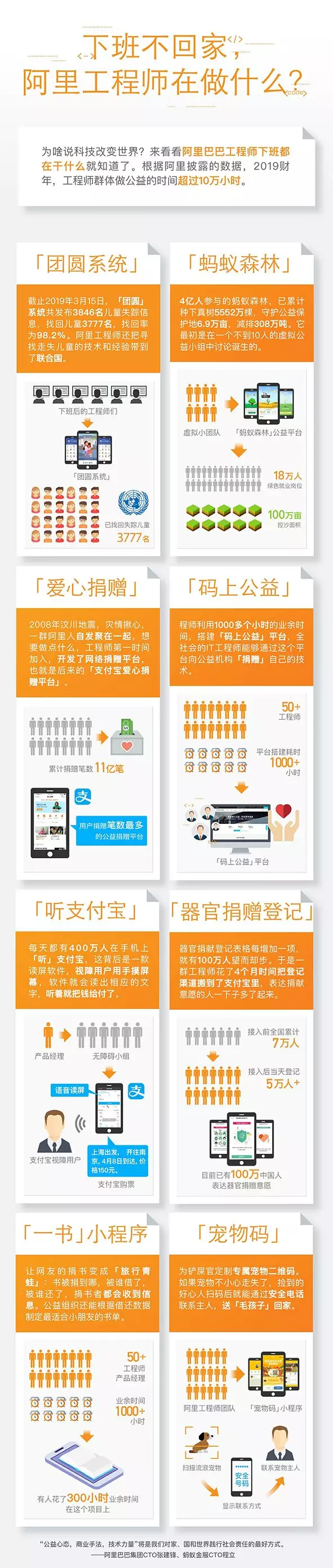 2015年,阿里工程师用业余时间自愿支持研发了互联网打拐的“团圆”系统,三年来,“团圆”系统找回了3901个失踪的孩子,找回率达到98%。